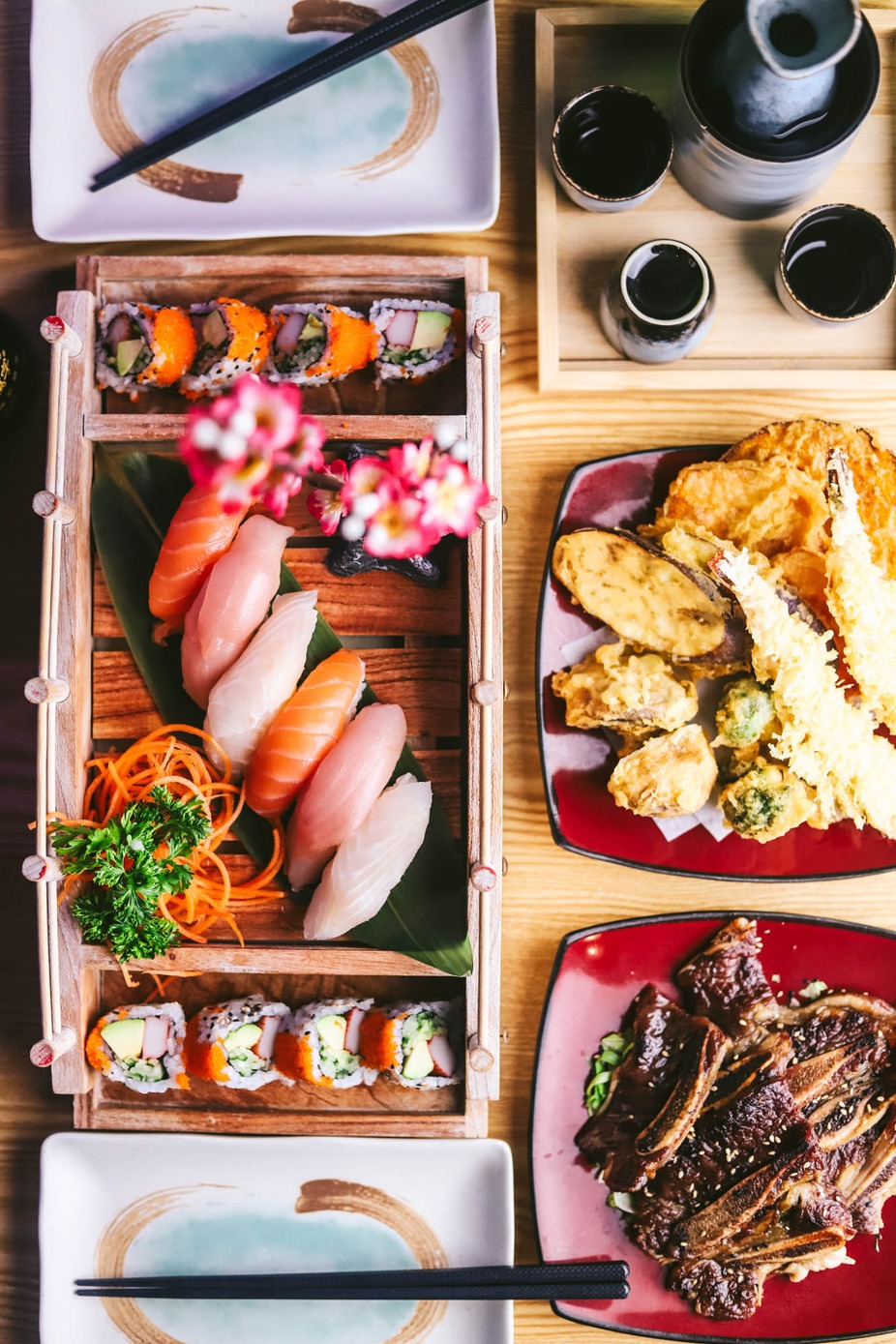 Explore the mouthwatering dishes at Sushi Panda, SE Calgary's favourite all-you-can-eat Japanese and Thai restaurant near Canyon Meadows. From our signature Spicy Tuna Sushi Pizza and fresh Salmon Sashimi to flavour-packed Spicy Salmon Rolls, Rainbow Rolls, and Mango Tango Rolls, every dish is prepared with the freshest ingredients. Craving Thai? Try our Pad Thai, Thai curries, and Tom Yum soup — all part of our 150+ item AYCE menu. Whether you're dining in our VIP room with interactive hologram wall or ordering takeout, Sushi Panda delivers quality and value. Check out our full menu or contact us to place an order.